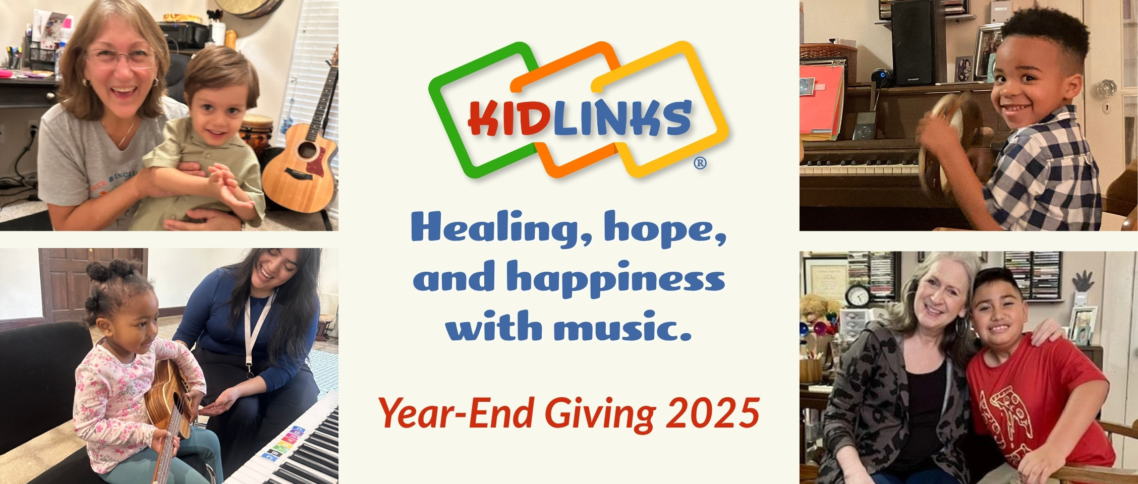 As the year comes to a close, YOUR generosity can make a lasting impact. Every gift to KidLinks helps provide therapeutic music programs and free online music resources that bring comfort, connection, and joy to children facing medical, physical, and emotional challenges.